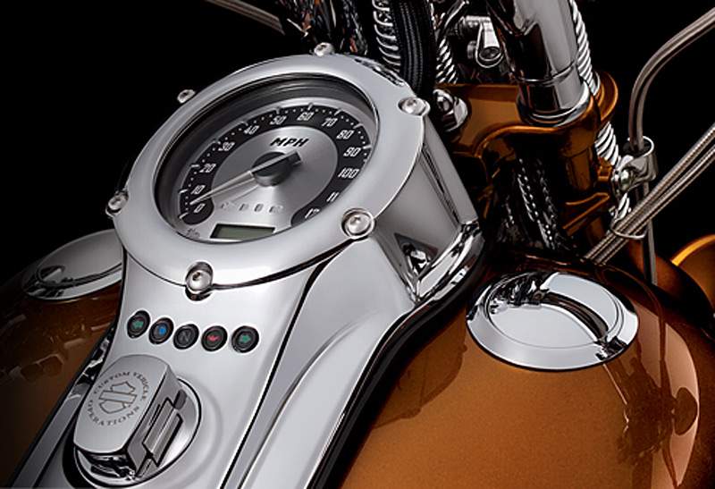 Zugleich profitiert die Screamin’ Eagle Softail Springer von denselben Neuerungen wie die Softail Baureihe des Modelljahrs 2008 wie etwa vom neuen Schwimmsattel der Hinterradbremse, vom verschraubten Rahmenheck, von den neuen Abdeckungen der Heckfender-Halterungen und vom neuen Tankgeber samt neuer Benzinpumpenleitung. Lenkergriffe, Fußrasten, Fußbrems- und Schalthebel sowie die Hupenabdeckung stammen aus dem Centerline Zubehörprogramm. Der Lenker wird von Lenkerklemmen mit verdeckter Verschraubung gehalten, zwischen denen ein neuer bündig eingefasster Mini-Drehzahlmesser platziert ist. Farblich passend lackiert sind Rahmen, Schwinge, Springergabel, Öltank, Scheinwerfergehäuse, Schalldämpferhalterungen, Seat Post und obere Gabelbrücke.