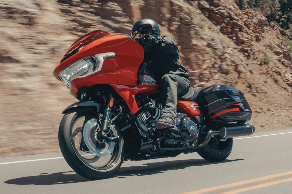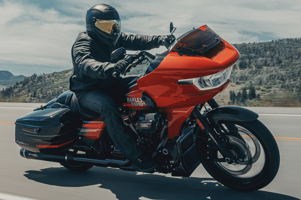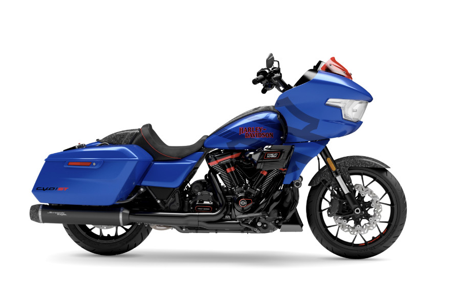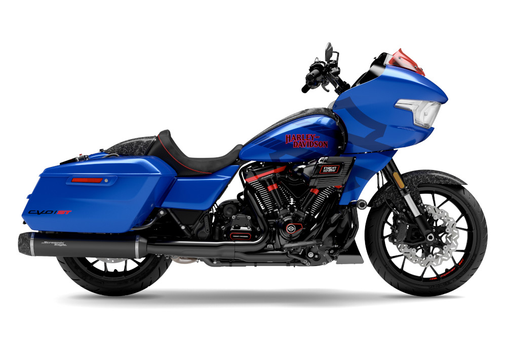 Die CVO Road Glide ST ist in drei exklusiven Lackierungen erhältlich – Citrus Heat Re-Entry, Inferno Gray und Electric Coast. Jede dieser Farben betont den renninspirierten Auftritt dieses Motorrads. Citrus Heat Re-Entry ist nur für dieses Modell erhältlich und zeigt eine auffällige Screamin’ Eagle Grafik an Verkleidung und Tank, während sich Inferno Gray und Electric Coast durch den Harley-Davidson Schriftzug und ein übergroßes Bar Shield Logo auszeichnen. Dieses Motorrad sieht so kraftvoll aus, wie es klingt.