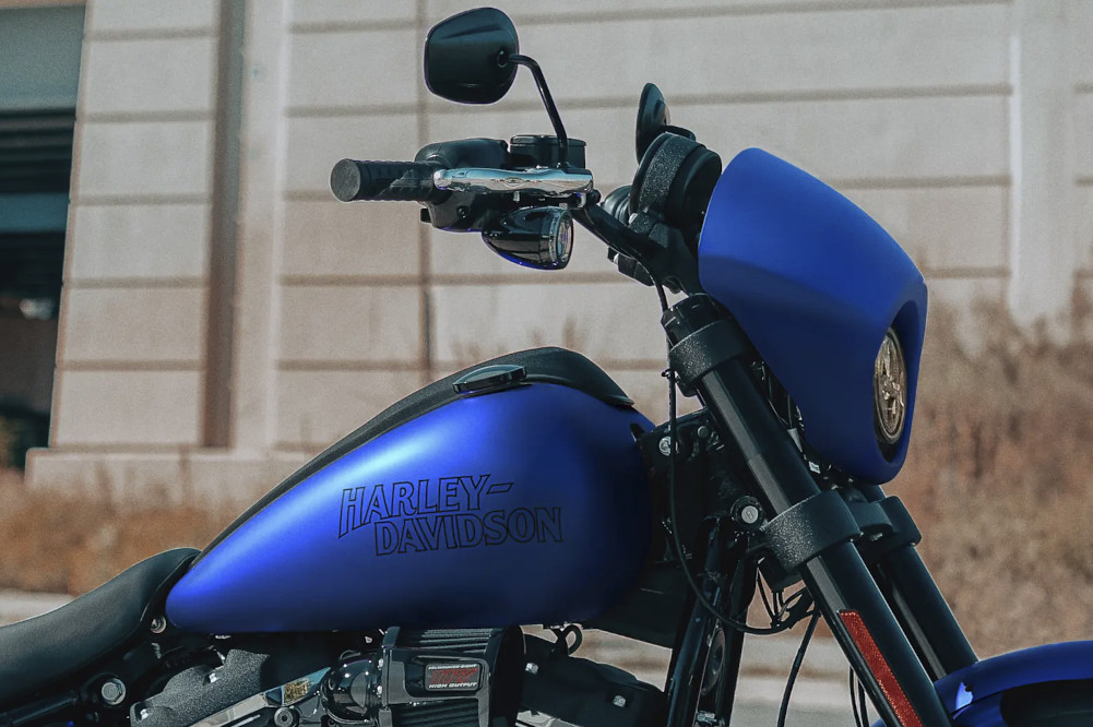 Auffällige Lackierungen und Graphics unterstreichen die ohnehin schon aggressive Optik der Low Rider S durch ihr tiefschwarzes Finish vom Tank bis zum Heck.
