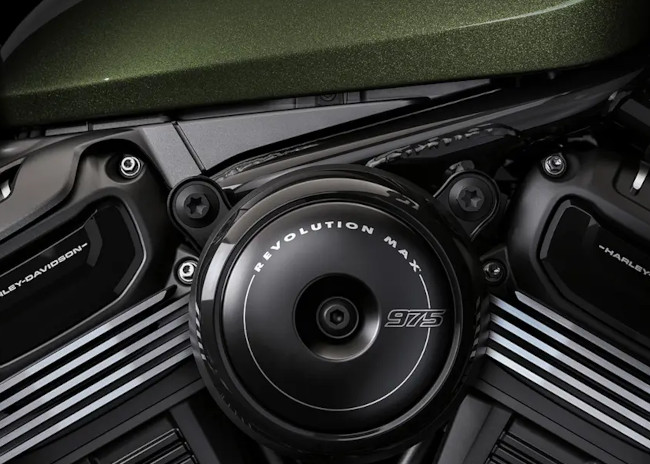 Der Revolution Max 975T-Motor ist komplett tiefschwarz, mit kontrastierenden matten und glänzenden Finishes und neu gestalteten, nicht hervorgehobenen Kühlrippen, was ihm ein aggressives Aussehen verleiht.