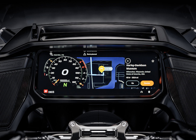 Ein 312 mm großes Touchscreen-TFT-Farbdisplay und Skyline OS liefern Kartenansichten in 3D, natürliche Spracherkennung und vollständige Konnektivität. Alles wurde daraufhin entwickelt, mit Handschuhen bedient und bei hohen Geschwindigkeiten erkannt zu werden. Die auswählbaren Fahrmodi Road, Sport, Rain und Custom sind direkt in die Oberfläche integriert, damit Du die Motorcharakteristik, die Motorbremswirkung und die Antriebsschlupfregelung durch einfaches Antippen steuern kannst. Navigation, Kommunikation und Entertainment verschmelzen nahtlos, damit Du Dich auf die Straße vor Dir konzentrieren kannst.