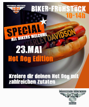 Biker-Frühstück mit Hot Dogs und anschließender Ausfahrt