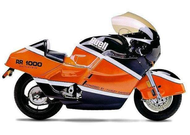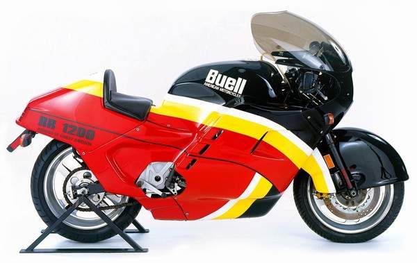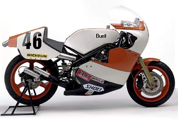 Die erste Buell und die einzige Zweitakter-Vierzylinder („Square-Four", drehschiebergesteuert mit 750 ccm) wurde speziell für die AMA Formel 1 konstruiert. Nur ein Exemplar wure von der 280 km/h schnellen 163-PS-Maschine verkauft, weil die AMA-Bedingungen kurz darauf von 750 ccm auf 500 ccm geändert wurden. |