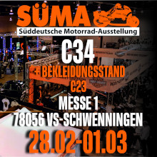 Vom 28. Februar bis 1. März 2026 öffnet die Süddeutsche Motorrad Ausstellung erneut ihre Türen – mit allem, was die Zweiradwelt bewegt. Neue Modelle, starke Marken, Zubehör, Bekleidung, Reisen und Actions.Freier Eintritt für Biker (Motorrad, Quad, Roller oder Trike) über Tor 4. Sonst Eintritt zur SüMa 8 €.