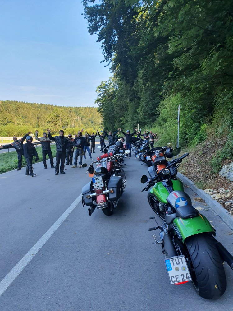Sonne, heiß, gute Laune: Genau der richtige Tag für die Tour zum Schloss Lichtenstein mit Roadcaptain Anita