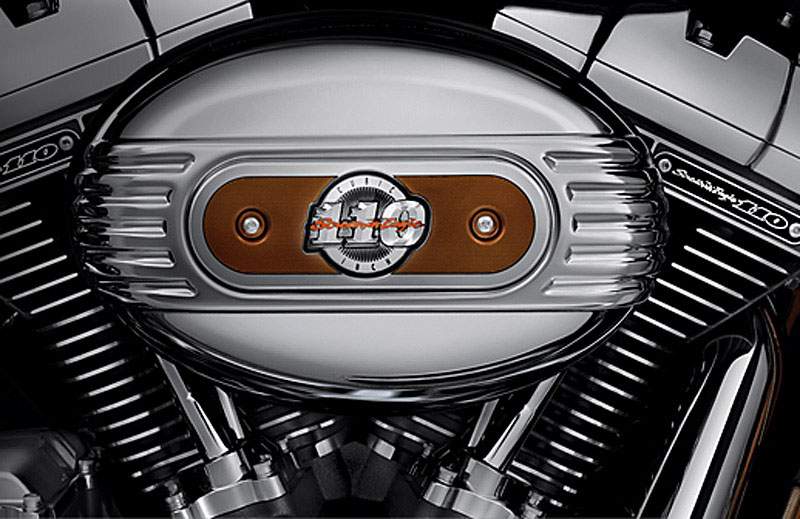 Zu den Umbauten der Screamin’ Eagle® Road King® zählt unter anderem eine neue Riser-Abdeckung mit Kontrollleuchten. Der neue 22,7 Liter Touring Tank, der für eine herausragende Reichweite sorgt, wird hier kombiniert mit einer neuen Tankkonsole und einem granitfarbenen Emblem mit gehämmertem Finish. Zur neu gestylten Ledersitzbank mit seitlichen Chrom-Applikationen gesellen sich passende Rückenlehnen und Satteltaschen.