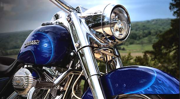 Die Screamin’ Eagle Road King ist in drei exklusiven Farbkombinationen zu haben: Als nummeriertes 105th Anniversary Sondermodell in Crystal Copper und Black Diamond, in Twilight Blue und Candy Cobalt mit Ghost Flame Graphics sowie in Black Diamond und Silver Dust mit Ghost Flame Graphics. Rahmen und Schwinge sind jeweils farblich passend dazu lackiert.