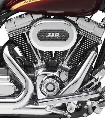 ![]() | • | Der Screamin’ Eagle Twin Cam 110 Motor mit 1803 ccm Hubraum ist schwingungsentkoppelt im Rahmen gelagert und liefert ein Drehmoment von 156 Nm bei 3750/min. |