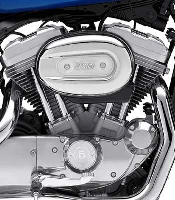 ![]() | • | Gummigelagerter XL Evolution™ 883 Motor - Silberfarben pulverbeschichtet mit polierten Details |