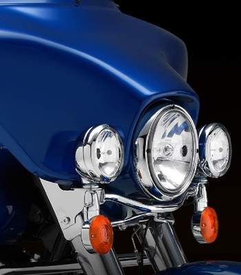 | • | Lenkerfest montierte "Bat Wing"-Verkleidung mit Klarglas-Zusatzscheinwerfern |