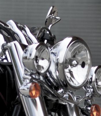 | • | Verchromtes, niedriges Rückleuchtengehäuse, von eleganten, silbernen Bullet Blinkern flankiert |