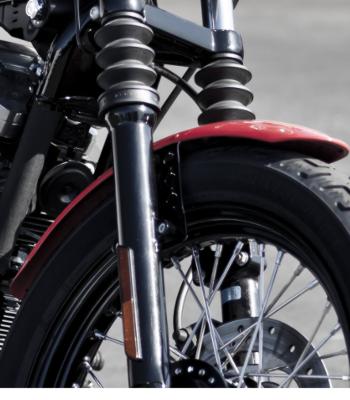 | • | Schwarze Vorderradgabel mit Faltenbälgen |