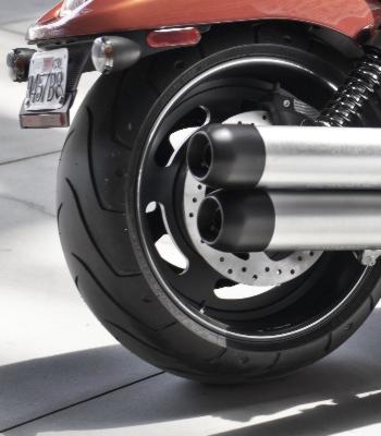 ![]() | • | Wuchtiger, 240 Millimeter breiter Hinterradreifen |