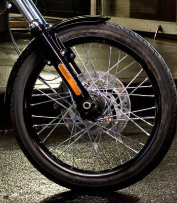• | Flach gehaltener Fahrersitz und Sozius-Sitzkissen. Niedrigste Sitzhöhe aller zweisitzigen Harley-Davidson Serienmodelle: 660 mm. Lücke zwischen Fahrersitz und Kraftstofftank gibt den Blick auf den Rahmen frei. |