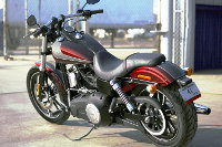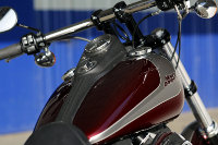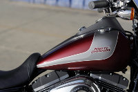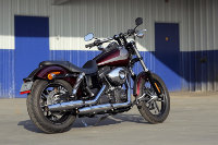 Das neue Modell ist ein Big Twin, der wie die serienmäßige Street Bob auf all jene Features reduziert wurde, die wirklich zählen. Dazu gehören der gechoppte Heckfender, der Fat Bob Tank und der schwarze Antriebsstrang. Hinzu kommen bei der Special Edition Leichtmetallgussräder mit fünf Doppelspeichen in Schwarz mit kontrastierend gefrästen Flächen. Um eine niedrigere Silhouette zu erzeugen, ersetzt ein flacher Drag Bar Lenker den Mini Ape des Serienmodells. Während der Fahrer bei der Serienversion auf einem Solositz Platz nimmt, schwingt er sich bei der Special Edition auf eine Badlander Doppelsitzbank, die sich eng an die Kontur des Rahmens und des Heckfenders anschmiegt und die klare, schwungvolle Linienführung vom Tank zum Heck unterstreicht. Darüber hinaus beeindruckt die Special Edition mit einer ‚Dominator’-Two-Tone-Lackierung in Mysterious Red Sunglo mit silberfarbenen Elementen auf Tank und Fendern.