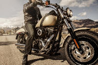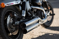 Die Fat Bob ist ein Factory-Custombike, wie Sie es sich immer gewünscht haben. Dank des minimalistisch und kraftvoll gestalteten Lenkers mit innenliegender Kabelführung haben Sie sie jederzeit sicher im Griff. Zu der ebenso wuchtigen wie coolen Erscheinung tragen das 16 Zoll große Vorderrad und der mächtige Twin Cam V2 bei. Wenn Sie den Style eines dunklen und fahraktiven Dark Custom Bikes lieben, liegen Sie mit der Fat Bob genau richtig. Von den Leichtmetall-Gabelbrücken über das Batteriecover bis zum Scheinwerferzierring bildet diese Maschine ein klares Statement. Die High Performance Federbeine sorgen nicht nur für Komfort und Fahrstabilität, ihre Kapselung macht sie auch zum unwiderstehlichen Eyecatcher.