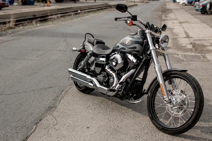 Wer noch mehr Custom-Look ab Werk will, wählt die Dyna Wide Glide mit der optional erhältlichen Flames-Lackierung am Tank.