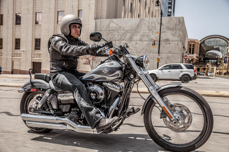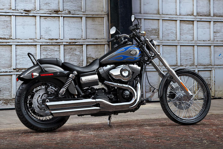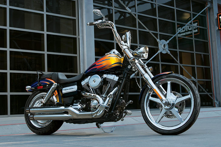 Die Harley-Davidson Dyna Wide Glide (FXDWG) des Modelljahrs 2014 ist ein Bike mit klassisch-kompromisslosem Charakter. Sie ist mit einem leistungsstarken, luftgekühlten Twin Cam 103 und dem Cruise Drive Sechsganggetriebe ausgestattet – für mehr Power zum Überholen, an Steigungen sowie bei der großen Urlaubstour mit Gepäck und Sozius. Am Front End fällt die lange, flach angestellte Gabel mit dem schlanken 21-Zoll-Rad ins Auge – wie das breite Hinterrad und die elegante Silhouette ein klares Bekenntnis zum ultimativen Chopper-Style.
