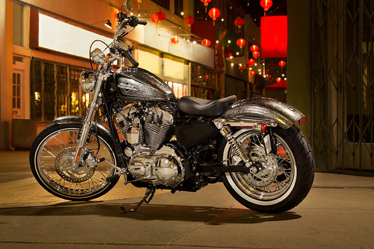 Im Modelljahr 2014 ist die XL1200V Sportster Seventy-Two mit einem leistungsstarken, neuen Bremssystem und serienmäßigem Antiblockiersystem (ABS) ausgestattet. Optional ist sie in Hard Candy Custom erhältlich, einer Metalliclackierung mit satter Tiefenwirkung und besonders großen Metallpartikeln im Stil der Kultbikes der 70-er. Mit dieser Big Flake Lackierung, dem Peanut Tank, dem klassischen Luftfiltercover, dem Ape-Hanger-Lenker und den kultigen Weißwandreifen sichert sich die Sportster Seventy-Two einen charakterstarken Auftritt.