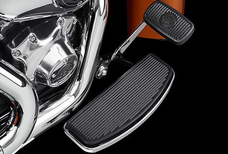 Die Möglichkeit, die Fußhaltung zu variieren, sorgt unterwegs für ein entscheidendes Plus an Langstrecken-Komfort. Harley-Davidson Fahrertrittbretter haben sich über Jahrzehnte bewährt. Das Design gestattet jede Menge unterschiedlicher Fußpositionen. Gummi-Elemente entkoppeln die Trittbretter effizient von den Motorvibrationen und gewährleisten so eine komfortable Fahrt.
