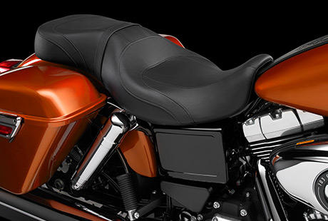 Fantastischer Sitzkomfort im nostalgischen Look: Die tief konturierte Bucket-Sitzfläche und die schlanke Frontpartie entlasten die Oberschenkel, geben dem Rücken optimalen Halt und bieten auch dem Sozius genug Platz, um lange Etappen zu genießen. Zugleich akzentuiert der ergonomische Sitz mit attraktiven Ziernähten die harmonische Linienführung der Maschine – Details, die Sie in dieser Form nur bei einer echten Harley-Davidson finden. Alles im Dienste des Komforts: für die Kurzstrecke und für lange Touren.