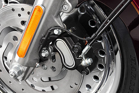 Bei der Fat Boy mit ABS haben wir die ABS-Komponenten so dezent in der Radnabe versteckt, dass das klare, unverfälschte Design Ihrer Maschine nach wie vor alle Blicke auf sich zieht. Was aber noch viel wichtiger ist: Sie können sich darauf verlassen, dass Ihr Bike Ihnen jederzeit gehorcht, wenn es sein muss.