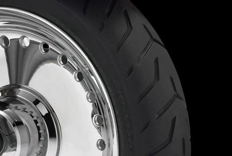Fetter ist besser. Die Harley-Davidson Fat Boy rollt auf einem 140er Dunlop Vorderreifen und einem breiten 200er Dunlop D407 am Heck. Die Reifen bieten eine äußerst gelungene Synthese aus Handling, Komfort und Grip – auch wenn Sie mal scharf bremsen müssen. Der gute Name Dunlop bürgt eben für Qualitä