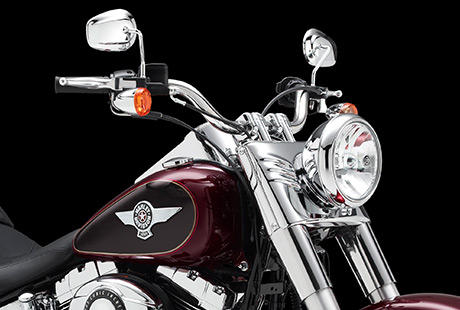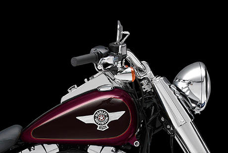 Dieser breite 1 1/4-Zoll-Lenker bildet ein entscheidendes Detail des klassischen Fat Boy Designs. Innenliegende Kabelführung sorgt für einen aufgeräumten Look. Mit dem komfortablen, weit nach hinten gezogenen Lenker haben Sie jederzeit alles im Griff – einerlei, ob es bis zum Horizont geht oder nur mal schnell in die City.