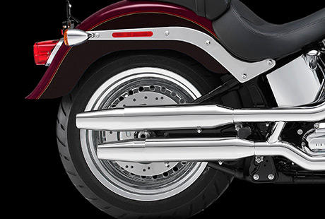 Wer ein modernes, komfortables Motorrad im klassischen Look historischer Starrrahmenbikes sucht, der liegt hier goldrichtig. Dieser Maschine sieht man nicht an, wie komfortabel sie ist, denn die Federbeine sind dem Auge des Betrachters verborgen unter dem Motor angebracht. Einen solchen Rigid Look findet man nur bei einer Softail.