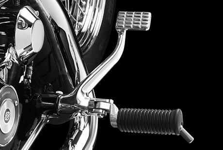 Mit den vorverlegten Fußrasten der 1200 Custom recken Sie sich völlig entspannt und unglaublich cool dem Horizont entgegen. Brechen Sie auf und lassen Sie alles hinter sich – auf einer Sportster, die so unverwechselbar ist wie Sie selbst.