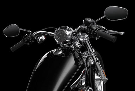 Wenn Sie den Lenker und die Lenkerarmaturen bequem ergreifen können, fühlen Sie sich auf Ihrem Motorrad wohl. Und das ist gerade dann der Fall, wenn Sie am Gasgriff einer Harley-Davidson drehen. Es fühlt sich gut an, und es ist komfortabel. Sie sind mit sich, Ihrem Bike und der Straße im Einklang. Bei der Entwicklung der neuen Lenkerarmaturen haben wir keine Mühen gescheut, um die Bedienung so intuitiv, sanft und reibungslos wie möglich zu gestalten. Damit Sie sich auf das konzentrieren können, was Sie hinter der nächsten Kurve erwartet und nicht auf das, was unter Ihren Daumen liegt. Dazu gehören Funktionen wie die elbstrückstellenden Blinker, und Bremshebel, die Sie mühelos ergreifen. Neu sind auch der Trip Switch und der Starter, denn 2014 wird die Zündung an allen Sportster Modellen schlüssellos aktiviert. Vermeintliche Details, die Ihnen unterwegs äußerst hilfreich sein werden, vermeintliche Details, für die Harley-Davidson bekannt ist.