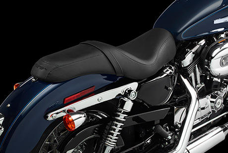 Die Sportster 1200 Custom ist mit einer eleganten, einteiligen Doppelsitzbank ausgestattet. Sie ist aufwändig aus hochwertigem Material hergestellt, und ihr Stil spricht für sich – schließlich fertigt Harley-Davidson seit mehr als 100 Jahren seine Sitze selbst. Ob Sie allein oder in Begleitung unterwegs sind: Dieser Sitz wird Sie überzeugen.