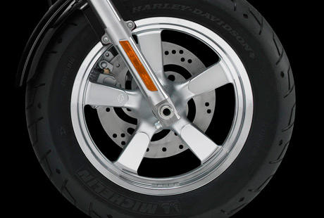 Ein gelungenes Custombike braucht Räder, die sich von der Masse abheben. Daher rollt die Sportster 1200 Custom auf hochglanzverchromten 5-Speichen-Leichtmetallgussrädern, die überall für einen glänzenden Auftritt sorgen. Individuelles Design für ein äußerst individuelles Motorrad.