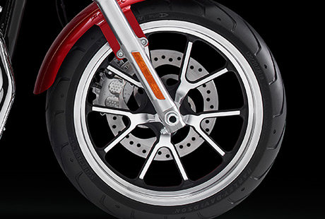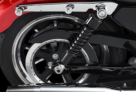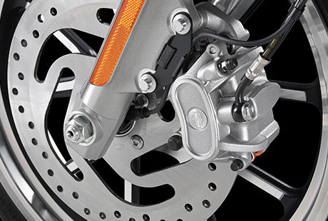 Mindestens so hoch wie Ihre Ansprüche an den Motor sind Ihre Ansprüche an die Bremsen ihrer Maschine sein. Im Modelljahr 2014 wurde das Bremssystem der Sportster-Modellfamilie umfassend überarbeitet. Der Durchmesser der Bremsscheiben ist von 292 mm auf 300 mm erhöht. Ein kraftvoller Vorderradbremssattel mit 34-mm-Kolben sowie die dazu passende Bremszange am Hinterrad sorgen für Bremspower. Für beide Räder kommen außerdem optimierte und äußerst effiziente Leichtmetall-Hauptbremszylinder zum Einsatz, und die Bremsleitungen sind nun mit Edelstahl ummantelt. Schließlich wollen wir, dass Sie Ihr Bike in allen Situationen so sicher wie mühelos verzögern können.