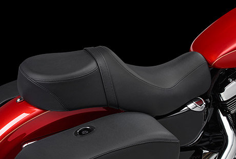 Die Kombination aus niedrigem Bucket-Sitz, tiefergelegter Hinterradfederung mit langen Federwegen und ergonomisch günstig geformtem Lenker sorgt bei Fahrern unterschiedlichster Staturen für eine optimale Sitzhaltung. Ein Bike, das Minute um Minute Ihr Selbstvertrauen stärkt: ob Sie es vom Seitenständer heben, in den Kurven Ihrer Hausstrecke schwelgen, unerwartete Schlaglöcher durchfahren oder einfach nur seinen Anblick bei einer Kaffeepause genießen