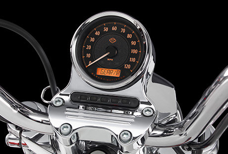 Man gibt es ungern zu, doch von Zeit zu Zeit kommt es vor, dass man nicht so recht weiß, in welchem Gang man gerade unterwegs ist. Daher sind die Sportster für 2014 mit einer neuen Ganganzeige im Tachometer ausgestattet. Mit ihrem Trip Switch können Sie jetzt sogar eine Drehzahlmesserfunktion aktivieren.
