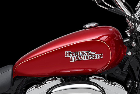 Der Teardrop Tank der SuperLow 1200T fasst 17 Liter Kraftstoff - jede Menge Sprit für die Langstrecke. Aber ein echter Harley-Davidson Tank muss nicht nur Benzin bunkern können. Einen solchen Tank kann nur Harley anfertigen. Mit klassischer Linienführung, einer weich verlaufenden Unterkante und einer Anordnung, die den Blick auf den Motor freigibt.