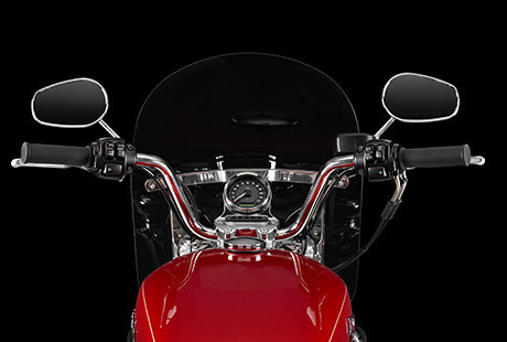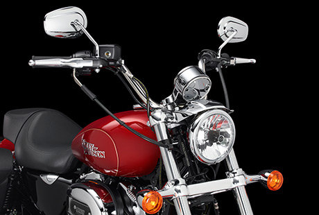 Damit Sie sich auf das konzentrieren können, was Sie hinter der nächsten Kurve erwartet und nicht auf das, was unter Ihren Daumen liegt. Dazu gehören Funktionen wie die selbstrückstellenden Blinker, und Bremshebel, die Sie mühelos ergreifen. Neu sind auch der Trip Switch und der Starter, denn 2014 wird die Zündung an allen Sportster Modellen schlüssellos aktiviert. Vermeintliche Details, die Ihnen unterwegs äußerst hilfreich sein werden, vermeintliche Details, für die Harley-Davidson bekannt ist.