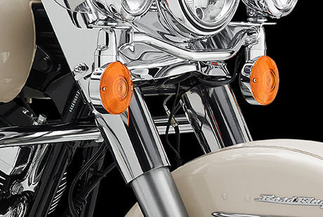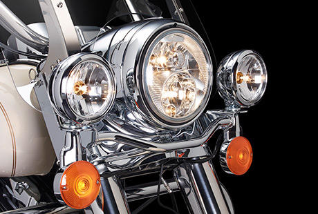 Wenn die Sonne untergegangen ist, ist Ihr waches Auge mehr denn je gefordert. Um es Ihnen ein wenig einfacher zu machen, hat Harley-Davidson deshalb zwei neue Halogenscheinwerfer in das klassische Hiawatha-Gehäuse integriert und dazu passende Nebelscheinwerfer eingebaut. Bei einer Lichtstärke von kraftvollen 986 Lumen wird Ihnen garantiert nichts entgehen.