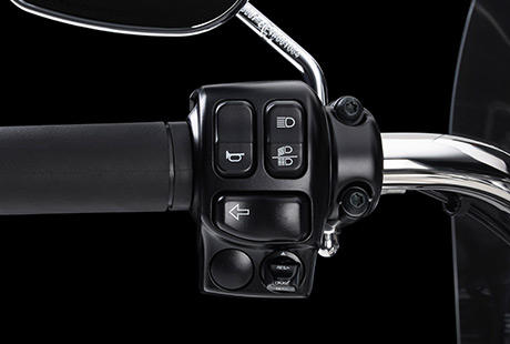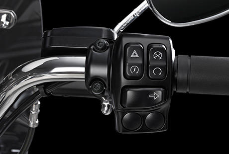 Es ist schwer, die Fahrt zu genießen und sich auf den Verkehr zu konzentrieren, wenn die Schalter am Lenker umständlich zu bedienen sind. Deshalb hat Harley-Davidson den Lenkerarmaturen den neuen Touring-Maschinen genauso viel Aufmerksamkeit geschenkt, wie dem Rest der Bikes. Sie sind nun ergonomischer gestaltet und exakt so positioniert und ausgerichtet, dass Sie perfekt unter Ihrem Daumen liegen. Harley-Davidson hat eine leicht aktivierbare Geschwindigkeitsregelanlage und einen leicht greifbaren Trigger zur Aktivierung der Displayanzeigen angebracht. Zudem wird jetzt jede Tastenaktivierung durch ein vertrauenseinflößendes, fühlbares Klicken bestätigt. Und die elektrische Anlage ist bereits auf das einfache Customizing mit weiterem elektrischen Parts and Accessories vorbereitet.