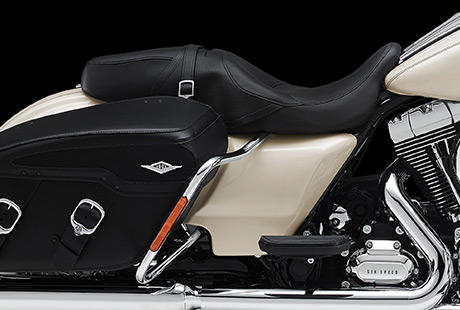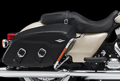 Einzigartig an der Road King Classic sind die in Premium-Leder gehüllten Spritzguss-Hartschalenkoffer und der neue, dazu passende Sitzbezug. Das feine, handverarbeitete Leder ist im Vergleich zum Leder herkömmlichem Taschen extrem langlebig. Die Koffer behalten stets ihre Form. Und wenn das Leder altert, trägt dies nur zum klassischen Look der Maschine bei. Bei einem Fassungsvermögen von rund 52 Litern können Sie jede Menge Gepäck sicher verstauen und mühelos darauf zugreifen, wann immer Sie es brauchen.