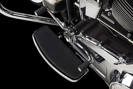 Die Möglichkeit, die Fußhaltung zu variieren, sorgt unterwegs für ein entscheidendes Plus an Langstrecken-Komfort. Harley-Davidson Fahrertrittbretter haben sich über Jahrzehnte bewährt. Und dank der höhenverstellbaren Beifahrer-Trittbretter kommt auch Ihr Passagier nicht zu kurz. Gummi-Elemente entkoppeln die Trittbretter effizient von den Motorvibrationen. Und die Schaltwippe sorgt für ein einzigartig cooles Schaltgefühl. Daran gewöhnt man sich im Nu – und will es nie mehr missen!