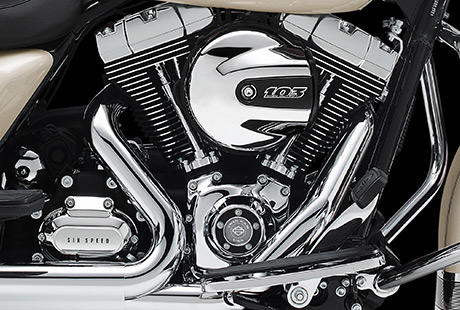 Die Motor Company weiß nur zu gut, was ein Motorradfahrer an einem Motor schätzt. Diese Erfahrung aus mehr als hundert Jahren Motorenbau kam bei der Entwicklung des Twin Cam 103™ Motors voll zum Tragen. Harley-Davidson gab alles, um jeden Kubikzoll zu perfektionieren und Design und Technologie noch weiter zu verbessern. Und zwar ohne Kompromisse beim einzigartigen Stil einzugehen, der eine Harley Davidson seit jeher auszeichnet – ganz in der Tradition der Flathead, Knucklehead, Panhead, Shovelhead, Evolution, Twin Cam 88 und Twin Cam 96™ Motoren, die Geschichte geschrieben haben. Die Leistung und Robustheit dieser Triebwerke sind ein direktes Ergebnis der unzähligen Meilen, welche die V-Twins seit 1909 hinter sich gebracht haben, und des stolzen Erbes von über hundert Jahren, die dem Leben auf zwei Rädern gewidmet waren.