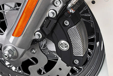 Zweifellos gibt es auf vielen Touren Augenblicke, in denen Sie blitzschnell bremsen müssen. Und diese Momente können Sie weder auswählen, noch treten sie immer auf ebenen, geraden, trockenen und perfekt asphaltierten Strecken auf. Deshalb sind die Touring-Modelle mit dem neuen Reflex Antiblockiersystem (ABS) mit dynamischen, elektronisch verlinkten Bremsen ausgestattet, die die Bremskräfte optimal auf das Vorder- und Hinterrad verteilen. Mit ABS werden ein blockiertes Vorderrad oder ein rutschendes Hinterrad nun in die Geschichte verbannt. Und die Vorder- und Hinterbremsen sind elektronisch miteinander verlinkt, um bei sämtlichen Straßenbedingungen für jeden Reifen stets die korrekte Bremskraft bereitzustellen. Unabhängig von Ihrer Erfahrung werden Sie damit zum besseren Fahrer.