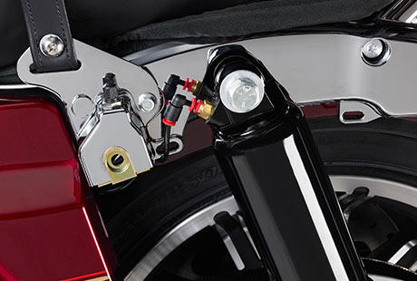 Mit der serienmäßigen Luftunterstützung können Sie das Fahrwerk Ihrer Maschine an die jeweilige Beladung, die Fahrbahnbeschaffenheit und Ihre ganz persönlichen Vorlieben angleichen. Reduzieren Sie den Luftdruck, um ein sanfteres Fahrerlebnis zu genießen, erhöhen Sie ihn, um das Fahrwerk härter zu machen. Das Ventil befindet sich zwischen Koffer und Heckfender. Bei dieser Harley-Davidson dreht sich alles um den Komfort – genießen Sie ihn!