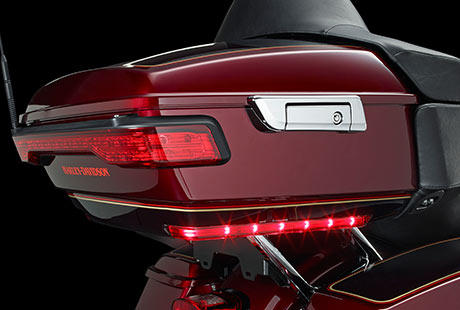 Die helle LED Tour-Pak Beleuchtung ist nicht zum Angeben geschaffen. Gesehen zu werden, ist auf einem Motorrad ausschlaggebend. Das wissen alle Fahrer. Dank Project RUSHMORE gehört es nun zum Serienumfang