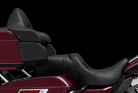 Liebe Beifahrer, Sie werden künftig noch mehr Spaß im Sattel haben! Sogar dann, wenn Sie auf der Fahrt Ihres Lebens über unzählige Meilen auf der letzten Etappe sind, bevor Sie sich am Abend bei einem heißen Vollbad ausruhen können. Je länger die Fahrt dauert, desto mehr werden Sie die Optimierungen zu schätzen wissen. In diesem Jahr hat Harley-Davidson den Soziussitz einen Zoll länger und einen Zoll breiter gemacht. Zwischen den Lautsprechern haben Sie nun zwei Zoll mehr Platz. Die tiefer gesetzten Schutzbügel der Koffer lassen Ihren Beinen mehr Raum. Alle diese Neuentwicklungen sorgen für den besten Komfort der Klasse.