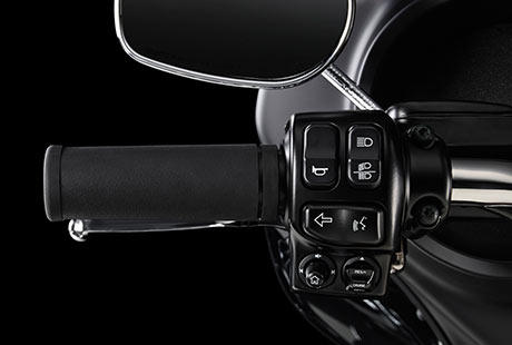 Es ist schwer, die Fahrt zu genießen und sich auf den Verkehr zu konzentrieren, wenn die Schalter am Lenker umständlich zu bedienen sind. Deshalb hat Harley-Davidson den Lenkerarmaturen der neuen Touring Maschinen genauso viel Aufmerksamkeit geschenkt, wie dem Rest der Bikes. Sie sind nun ergonomischer gestaltet und exakt so positioniert und ausgerichtet, dass Sie perfekt unter Ihrem Daumen liegen. Harley-Davidson hat eine leicht aktivierbare Geschwindigkeitsregelanlage, griffgünstige Bedienelemente für die Infotainment Funktionen und einen leicht greifbaren Trigger zur Aktivierung der Displayanzeigen angebracht. Zudem wird jetzt jede Tastenaktivierung durch ein vertrauenseinflößendes, fühlbares Klicken bestätigt. Auch der Zündschalter wurde optimiert. Und die elektrische Anlage ist bereits auf das einfache Customizing mit weiterem elektrischen Parts and Accessories vorbereitet.
