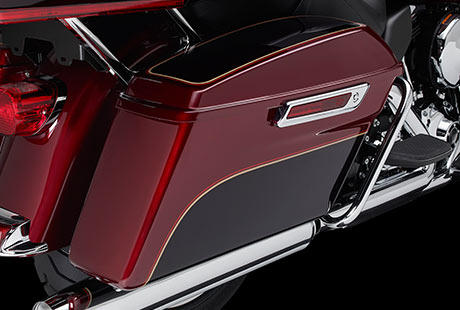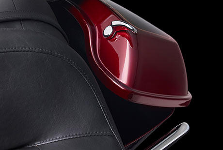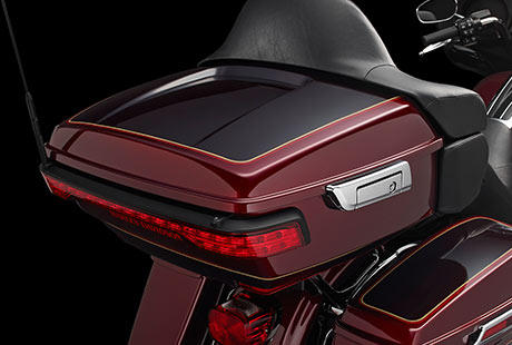 Bei jedem Staufach- und Kofferdeckel der Touring Familie hielt Harley-Davidson sich eine Regel vor Augen: Was sich nicht auf einen einzigen Knopfdruck oder mit einer im Handschuh steckenden Hand öffnen lässt, hat nichts an unseren Motorrädern verloren. Während der grundlegenden Überarbeitung dieser Bikes waren sich sämtliche Motorradfahrer, mit denen Harley-Davidson über Reisen sprach, in einem Punkt einig: Niemand will auch nur vorübergehend etwas auf dem Boden abstellen, bevor es in einen Koffer gepackt werden kann.