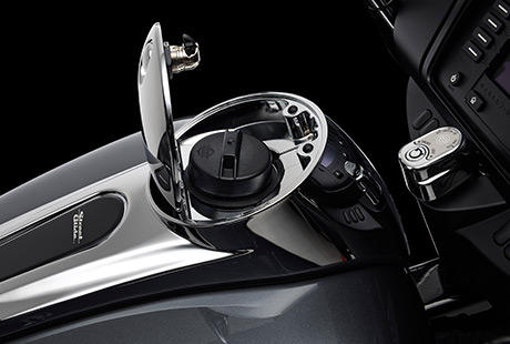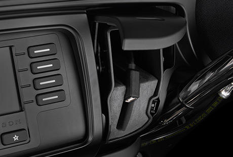Bei jedem Staufach- und Kofferdeckel der Touring-Familie hielt Harley-Davidson sich eine Regel vor Augen: Was sich nicht auf einen einzigen Knopfdruck oder mit einer im Handschuh steckenden Hand öffnen lässt, hat nichts an unseren Motorrädern verloren. Während der grundlegenden Überarbeitung dieser Bikes waren sich sämtliche Motorradfahrer, mit denen Harley-Davidson über Reisen sprach, in einem Punkt einig: Niemand will auch nur vorübergehend etwas auf dem Boden abstellen, bevor es in einen Koffer gepackt werden kann.